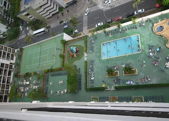 The 1-room Romantic Waikiki Banyan 2513 With Ocean And Diamond Head Views And Free Parking! apartment is situated in Waikiki, known for its popular surf beach, a 6-minute walk from The Waikiki Shell. The apartment offers a hot tub and an outdoor swimming pool for guests to enjoy during their stay.